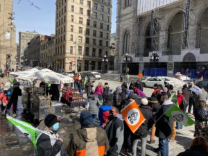Une centaine de membres, militants et militantes de la CSN ont manifesté à Montréal samedi après-midi pour soutenir les membres…