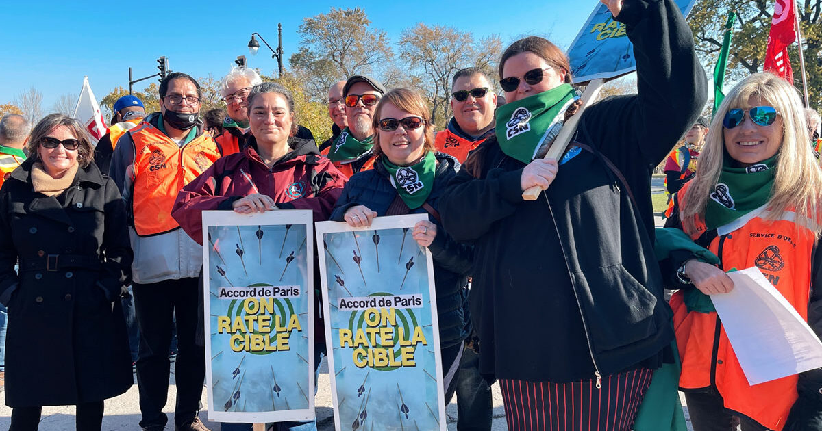 Exaspérés par l’inaction des gouvernements face à la crise climatique, des travailleuses et travailleurs membres des organisations formant le Réseau intersyndical pour le climat (RIC) ont décidé de se mettre en marche pour dénoncer la situation et réclamer des mesures suffisantes pour atteindre la cible de réduction des gaz à effet de serre de l’Accord de Paris. Réunis au parc du Mont-Royal, ils ont affirmé haut et fort leur volonté de changement.