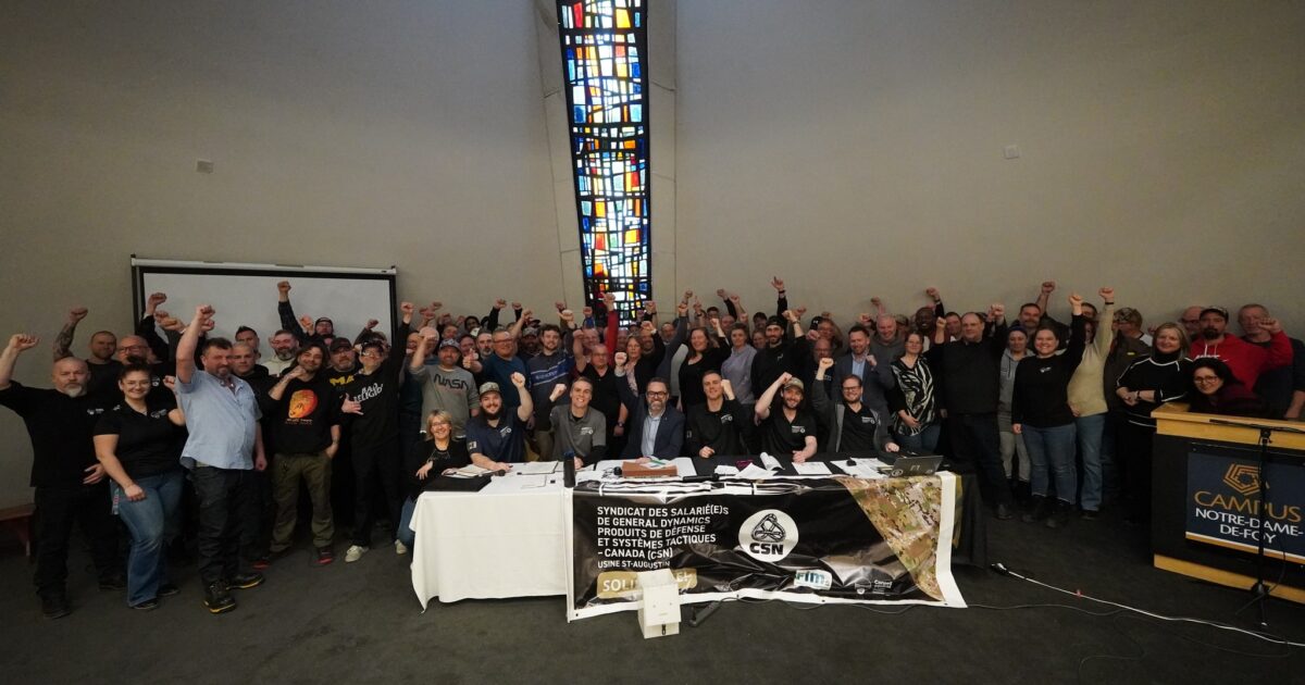 Réunis en assemblée générale, les membres du Syndicat des travailleuses et travailleurs de General Dynamics–CSN…