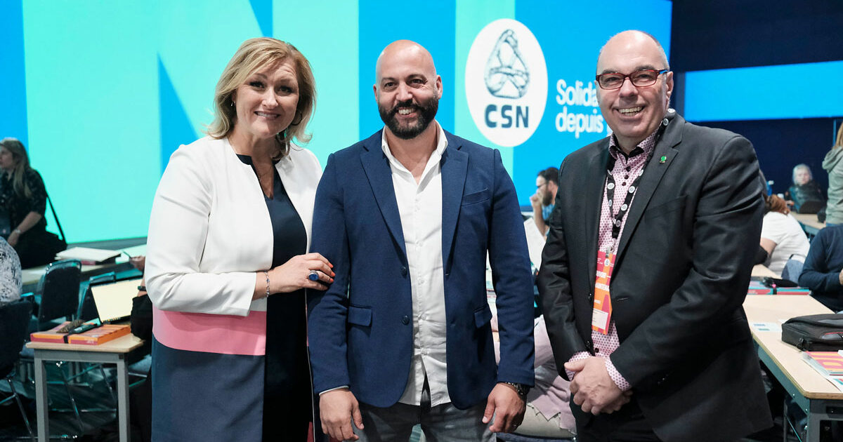 Comme le veut la tradition, les autres centrales syndicales ont été invitées au 67e Congrès de la CSN. La dirigeante de la FTQ ainsi que les deux dirigeants de la CSQ et de la CSD se sont adressés aux délégué-es de la confédération, en cette première journée d’événement. En pleine négociation du secteur public, les allié-es de la CSN dans le Front commun ont salué cette collaboration et lancé un appel à une solidarité encore plus tissée serrée.
