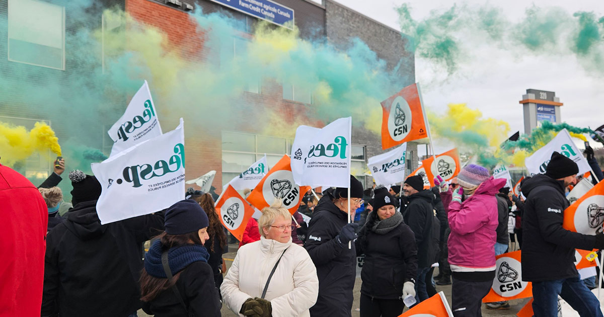 Des militantes et des militants de la CSN participaient ce midi à une action devant le bureau de la députée Amélie Dionne pour réclamer la fin des attaques gouvernementales envers nos services publics. En marge d’une instance de la Fédération des employées et employés de services publics (FEESP–CSN), cette manifestation appelle la population à faire front pour un autre Québec.