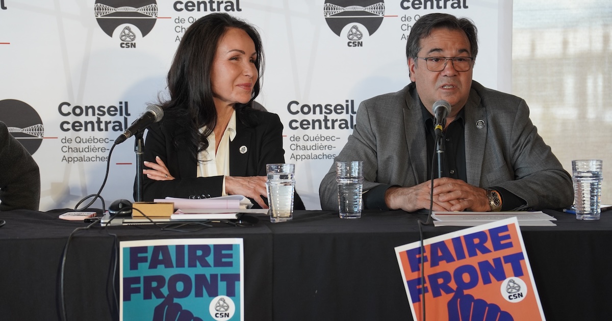 Face à une conjoncture politique particulièrement hostile, la CSN appelle à organiser la résistance et lance une campagne ambitieuse sur le thème « Faire front pour le Québec ». C’est en présence de quelque 120 délégué-es, représentant les deux tiers des membres de la CSN dans les régions de la Capitale-Nationale et de Chaudière-Appalaches, que François Enault, premier vice-président de la CSN, et Barbara Poirier, présidente du Conseil central de Québec–Chaudière-Appalaches (CSN), ont procédé au lancement régional de la campagne ce matin.