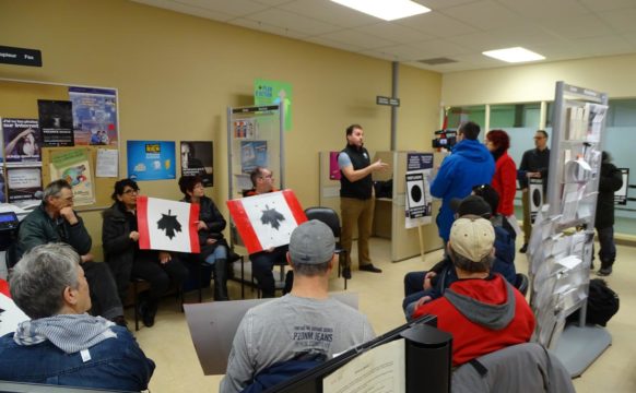 À 10 h ce matin, les bureaux de Service Canada à Chandler, à Cap-aux-Meules, à Baie-Comeau, à Forestville, à Sept-Îles ainsi que cinq bureaux au Nouveau-Brunswick ont été pris d’assaut par des militantes et militants solidaires et par des chômeurs. Bien que tout ait été calme et paisible, Service Canada a préféré demander l’aide de la Sûreté du Québec pour faire expulser les occupantes et occupants.