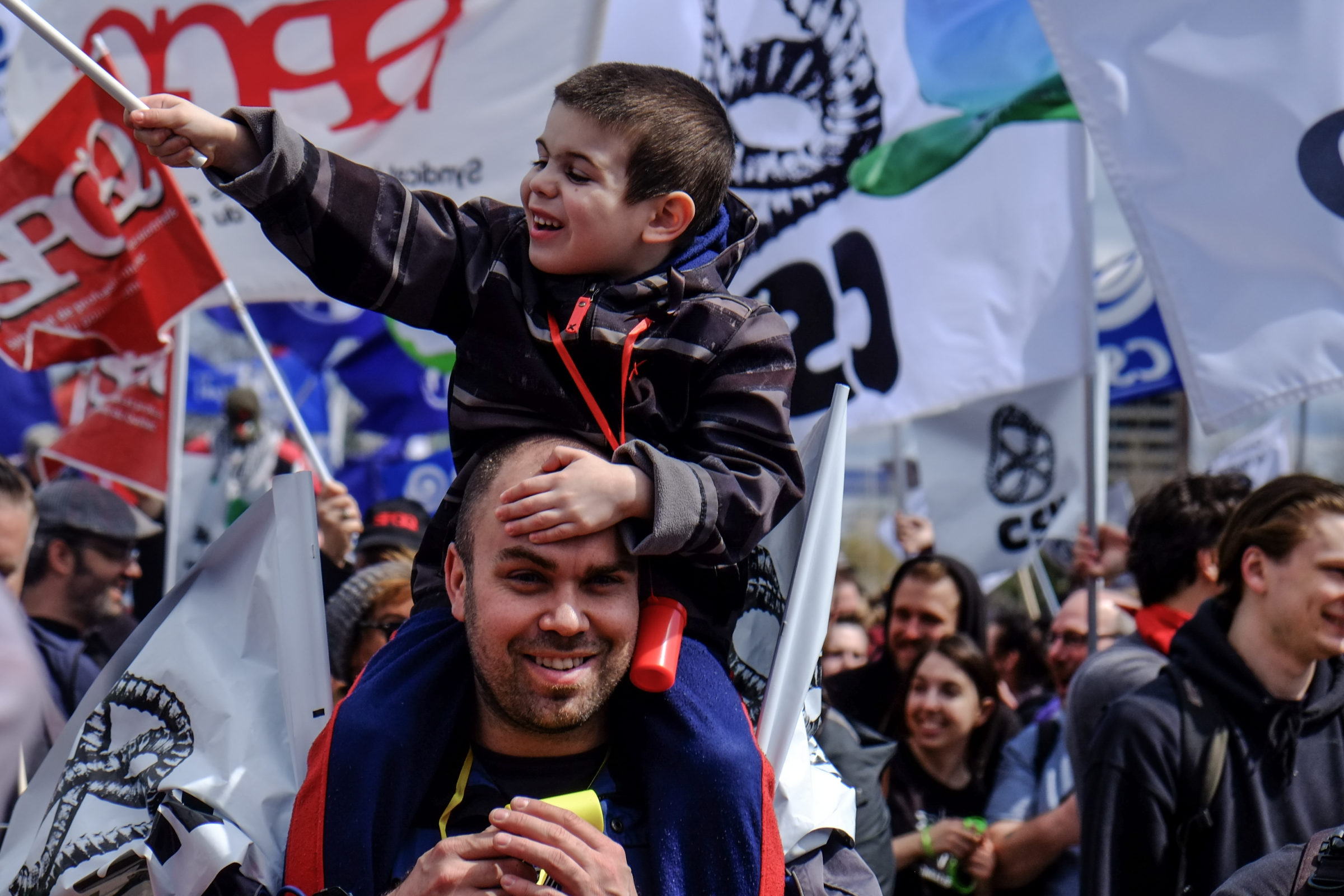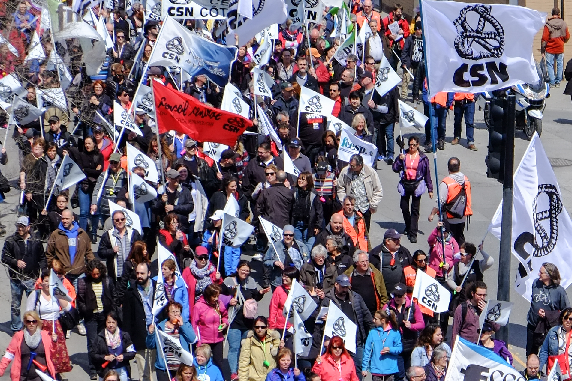 Plusieurs milliers de personnes ont manifesté dans les rues de Montréal samedi après-midi dans le cadre de la Fête internationale des travailleuses et des travailleurs.