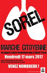 « Nous sommes dans la rue ce soir pour nous assurer que le gouvernement comprenne le message : nous voulons cet appareil et nous nous battrons pour l’obtenir », a indiqué Jean-Marc Lebeau, citoyen de Sorel-Tracy. Parmi les marcheurs, plusieurs malades des poumons ont signifié la différence qu’un appareil bronchoscope peut faire pour des gens comme eux.