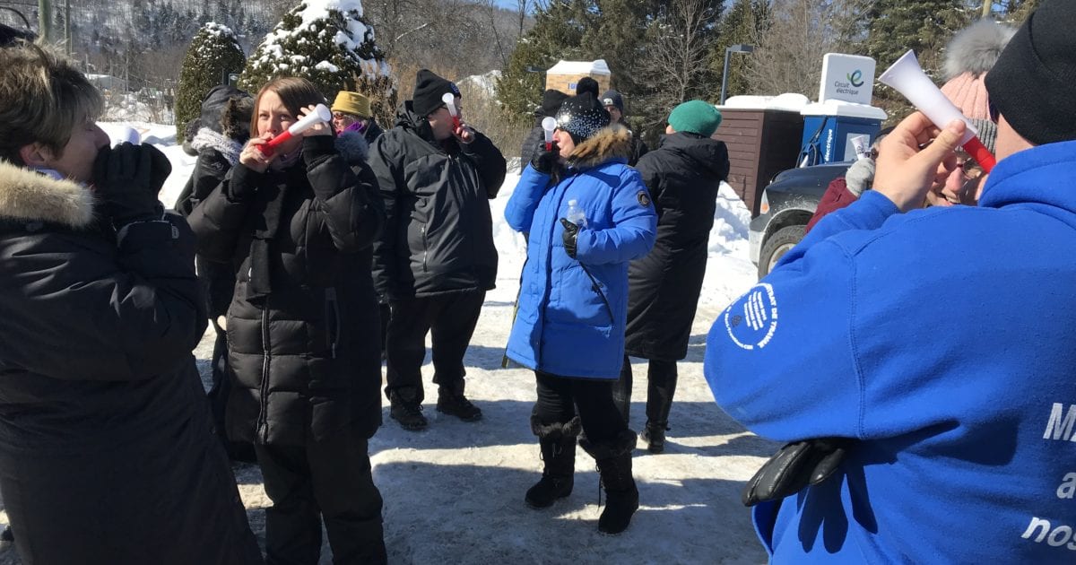 Plusieurs dizaines de travailleurs et travailleuses du Syndicat de la Ville de Mont-Tremblant (CSN) ont tenu ce midi une action de solidarité devant les bureaux de l’hôtel de ville en appui à leur comité de négociation.