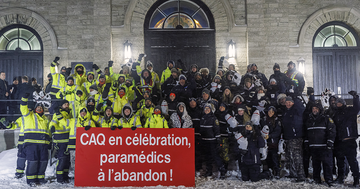 (Québec, le 10 décembre 2025) La CAQ tient aujourd’hui une petite fête, à Québec, pour souligner le passage de 2025 à 2026. Des paramédics et des agents de la paix en services correctionnels du Québec ont profité de l’occasion pour rappeler aux députés caquistes que les négociations piétinent pour le renouvellement de leurs conventions collectives, échues depuis le 1er avril 2023.