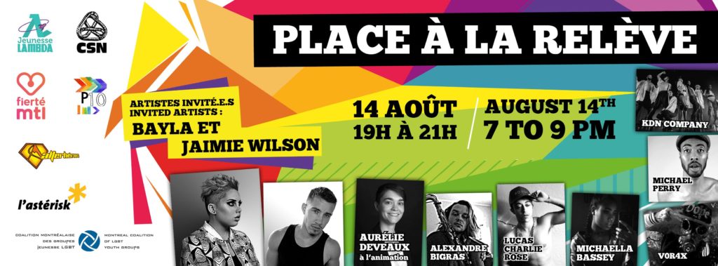 La CSN est ravie de présenter Place à la relève, un spectacle gratuit en association avec Astérik* dans le cadre des activités de Fierté MTL. Se tenant au Parc des Faubourgs le 14 août à 19 h, de jeunes artistes LGBTQ+ québécois prendront la scène pour cette deuxième édition de ce spectacle à ne pas manquer.