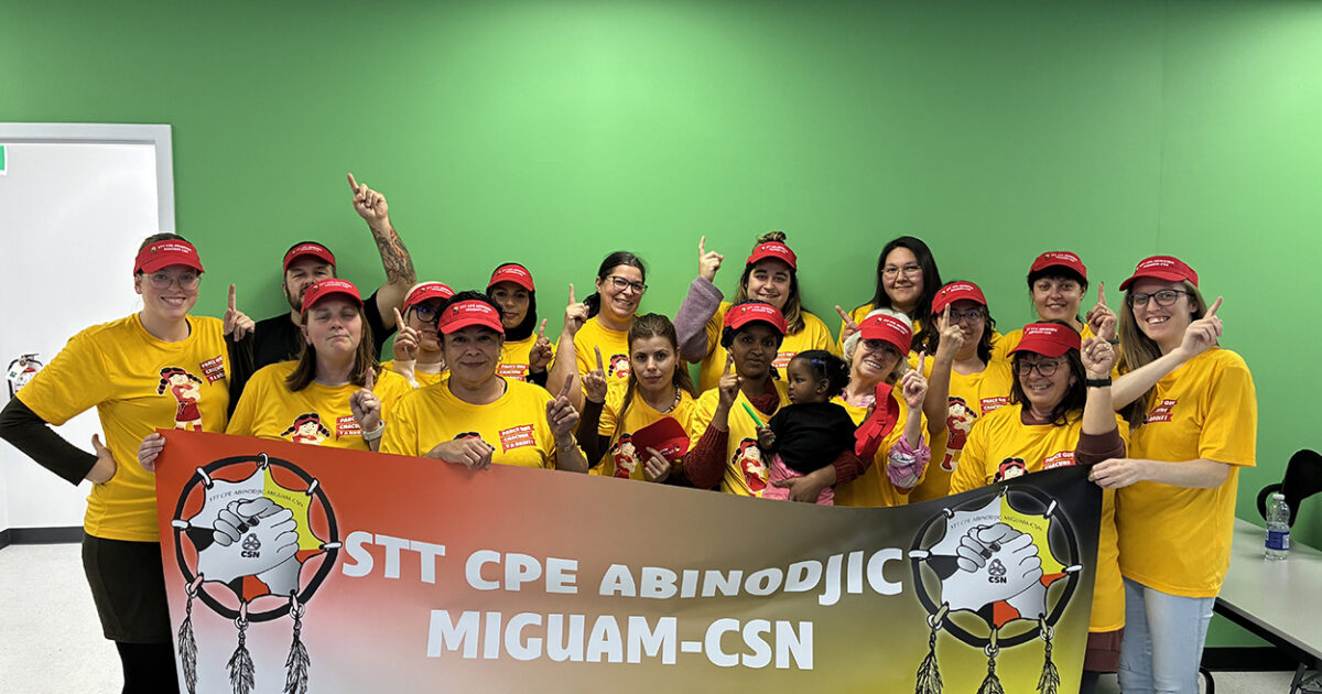 Les travailleuses et travailleurs du CPE Abinodjic-Miguam–CSN ont adopté à 93% leur première convention collective et obtiennent de nombreux gains. Au cours de la même semaine où se déroulait la Journée nationale de la vérité et de la réconciliation, le Syndicat des travailleuses et travailleurs du CPE Abinodjic-Miguam–CSN, se prononçait en assemblée générale le 2 octobre, sur sa première convention collective. Celle-ci faisait suite à l’entente de principe survenue le 18 septembre dernier.