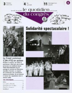 Le Quotidien du Congrès de la CSN (1972-2017) – CSN – Confédération des syndicats nationaux https://www.csn.qc.ca Le maillon fort du syndicalisme au Québec Wed, 18 Apr 2018 14:42:10 +0000 fr-FR hourly 1 https://wordpress.org/?v=6.8.3 https://www.csn.qc.ca/wp-content/uploads/2019/05/csn-logo-150x150.png Le Quotidien du Congrès de la CSN (1972-2017) – CSN – Confédération des syndicats nationaux https://www.csn.qc.ca 32 32 Regards sur le congrès, 63e Congrès, le vendredi 20 mai 2011 https://www.csn.qc.ca/quotidien_congrescsn_20110520/ https://www.csn.qc.ca/quotidien_congrescsn_20110520/#respond Wed, 28 Feb 2018 19:36:44 +0000 https://www.csn.qc.ca/wp-content/uploads/2018/02/quotidien_congrescsn_20110520.pdf
