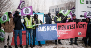 Des militantes et des militants de la CSN ont pris part à une action sous le thème de l’Halloween au…