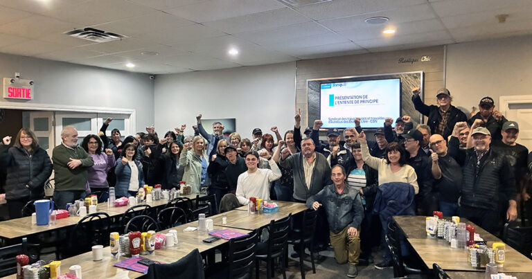 Hier soir, mercredi 22 avril, les membres du Syndicat des travailleuses et travailleurs d’Autobus des Érables–CSN ont adopté à 93 %, par voie de scrutin secret, l’entente de principe intervenue le…