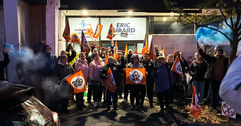 Des militantes et des militants de la CSN ont pris part à une action sous le thème de l’Halloween au bureau du ministre Éric Girard dans le but…