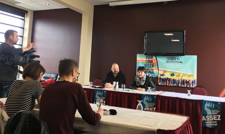 Dans le cadre de la campagne Assez ! Personnel surchargé, de la Fédération de la santé et des services sociaux (FSSS-CSN), des représentants du Syndicat du personnel de bureau,…