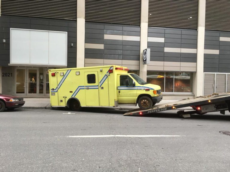 Des paramédics et des membres du personnel du secteur préhospitalier ont déposé aujourd’hui une ambulance dont trois roues sont manquantes devant les bureaux montréalais du ministre de la…